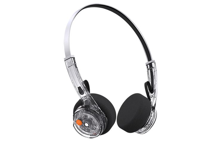レトロポップなデザインが特徴のオンイヤーヘッドホン。カラーバリエーションはブラック、グレージュ、ピンクに加えて、ハウジングがスケルトンになっている“トランスペアレント”(写真)もラインアップする。