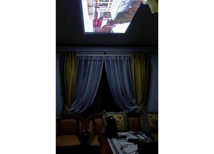 もちろん、昼間の明るいリビングで使おうとするなら、特殊な耐外光スクリーンを使うなどしない限り、テレビのようなクッキリ映像を見ることはできませんが、ちょっとカーテンを引いて直接光を妨げれば十分実用になります。最後に実写映像も紹介しますが、明かりを残したリビングでも結構“イケます”。テレビとはまた違った大画面の別世界が拓けるでしょう。