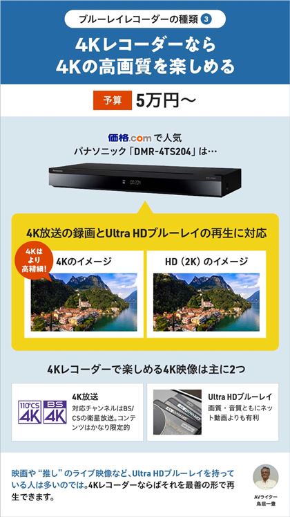 (3)4K放送やUltra HDブルーレイを楽しみたい人は「4Kレコーダー」が必須