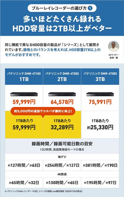 ブルーレイレコーダーの選び方(1) HDD容量は2TB以上がベター