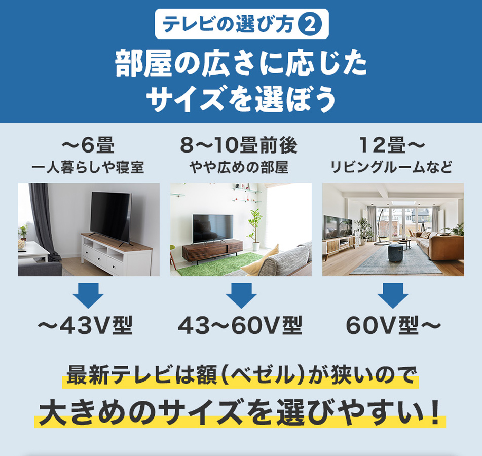 テレビを選ぶときに真っ先に考えるのは、サイズのことではないでしょうか。