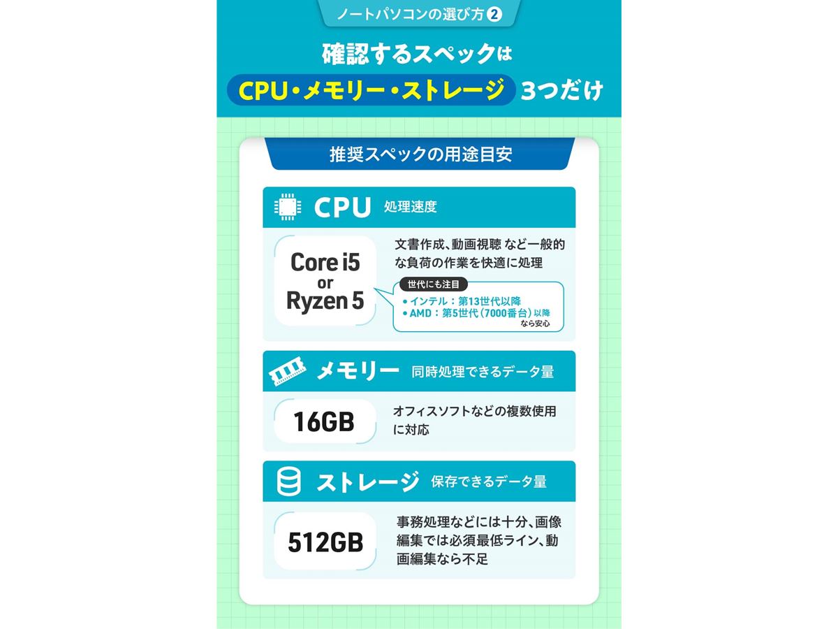 最低限確認すべきスペックは3つ! 少し高めの性能を確保しておこう