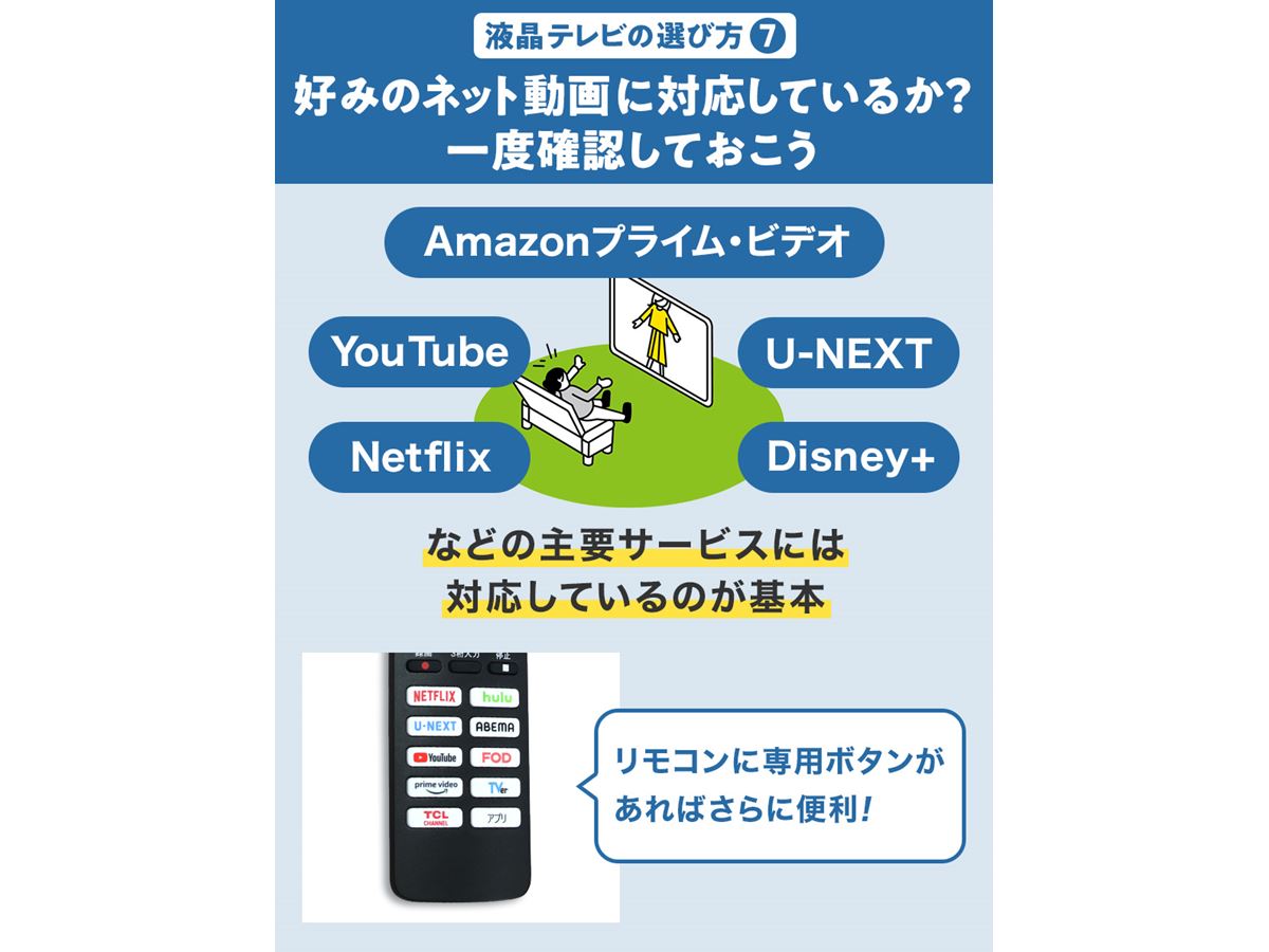 上記3つはすべての製品が対応していると思って間違いありませんが、TVerやDAZNなどに対応しているかどうかは製品次第。リモコンにショートカットボタンを搭載していることもあるので、自分が利用するサービスに対応しているかどうか、リモコンにボタンがあるかどうか、確認するとよいでしょう。