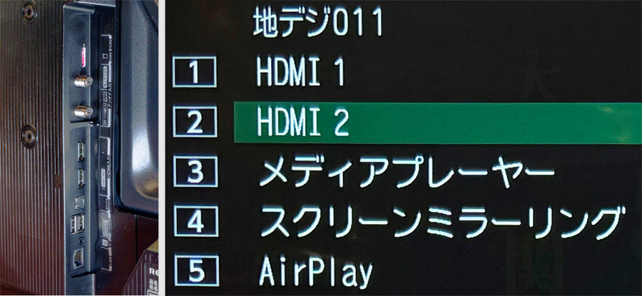 HDMI入力2系統などの端子構成も「32V35S」と「32S25S」で共通。「32V35S」はスマホのミラーリング(スマホの画面をテレビに映す)機能も備える