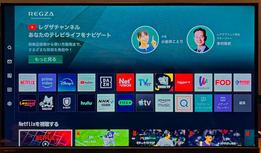 Wi-Fi(無線)または有線でインターネットに接続することで、各種ネット動画サービスを利用できるほか、「ざんまいスマートアクセス」といったTVS REGZAならではのネットワーク機能を活用できる。