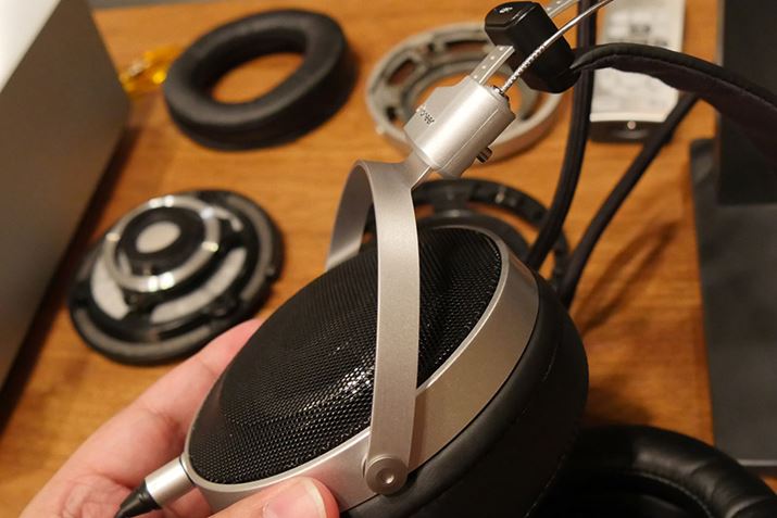音質とは少し離れるが、着け心地にもふれておきたい。オープンエアー型としては重い本体重量460gだが、頭に装着してみると意外なほどに軽い。テンションロッドによる側圧の具合がちょうどいいのと、本体のバランスがよくとれているからだ。試聴時間は5分と限られていたので長時間の着け心地は未確認だが、フィット感は良好だったと評したい。