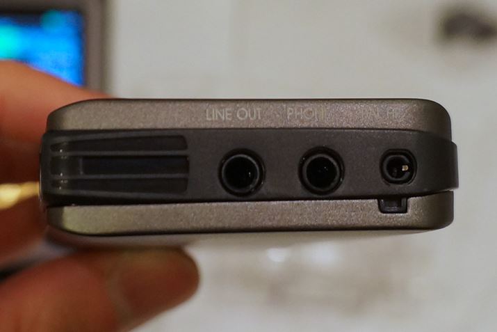 トップには、2.5mm 4極バランス出力端子(BAL HP)、3.5mmのステレオヘッドホン出力端子(PHONE)、ライン出力端子(LINE OUT)を装備。ライン出力端子は、光デジタル出力を兼ねている
