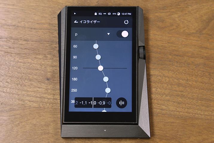AK380は、音の補正機能も大幅に強化されている。大きなトピックはイコライザー(EQ)だ。AK240世代にはグラフィックEQ(以下、GEQ)が用いられてきたが、AK380では、さらに細かく調整できるパラメトリックEQ(以下、PEQ)が採用されている。