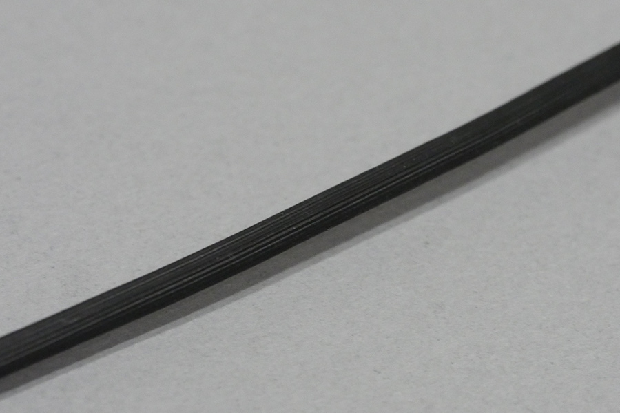 表面にウェーブ状の加工が施されたケーブル。直径(実測)は、Y字分岐より前が2mm程、後が1mm前後とやや細め