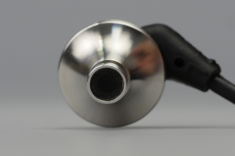ハウジングは、素材に、耐久性が高くさびに強い、ステンレス製(303Fグレード)を採用。ボディは削り出しになっており、楽器に似た形状も特徴的だ。この形こそ明瞭度を高めるための工夫で、トランペットの音の出口(いわゆるベルと呼ばれるところだが、この部分の形や大きさを変えることで、最終的な音色が変わると言われている)からヒントを得たデザインという。