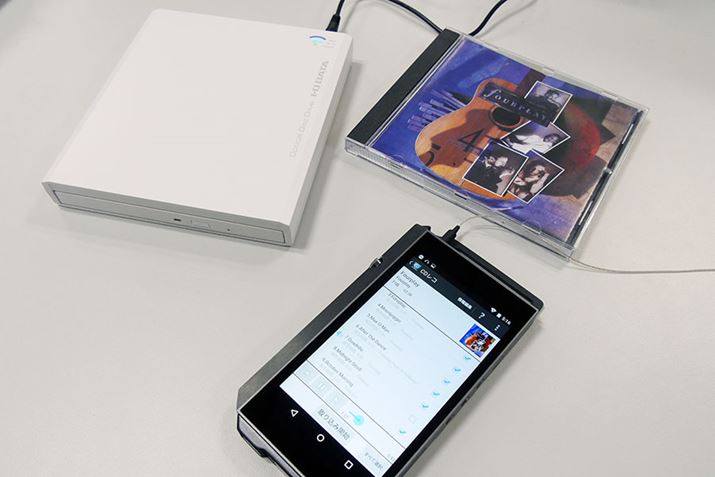 Android OSを採用するプレーヤーを選択するうえで、音楽ライフを便利にする機能として紹介したいのが、CDの簡易再生と直接リッピングができることだ。今回、iOSデバイスやAndroid搭載のスマートフォンやタブレットで直接DVDや音楽CDを楽しめる、アイ・オー・データ機器のDVDプレーヤー「DVDミレル DVRP-W8AI」を使って試してみたが、問題なく取り込めた。DVDミレルの動作対応機種の中にXDP-100Rの記載はないが、結論としては問題なく動作した。なお、アイ・オー・データ機器によれば、簡易再生機能はCD品質と同等とのこと。