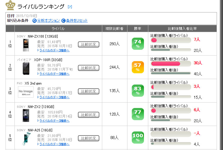 図7:「DP-X1 [32GB]」のライバルランキング(2015年12月8日時点)