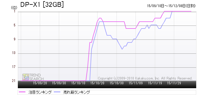 図2:「DP-X1 [32GB]」の売れ筋、注目ランキング推移(過去3か月)