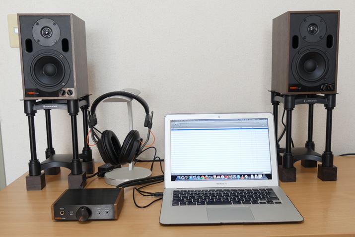 FSシリーズを実際に聴いて感じたのは、ニアフィールドでの相性がよかったこと。奥行70cmの標準的なパソコンデスクにセッティングしても、ハイレゾ音源の高音質を楽しめた。さらにセッティングを詰めていくことで、音のクオリティーをさらに引き上げることができるだろう。