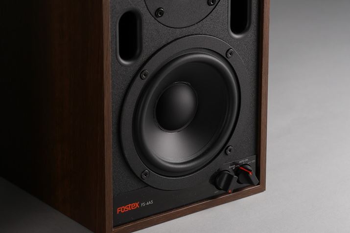 高級感のあるデザインも注目だ。ボディのルックスは本体側面の木目調パネルが特徴的。FSシリーズは、フォステクスのパーソナルスピーカーのカテゴリーに属しているが、同カテゴリーの中で木目調のビジュアルを採用しているのはFSシリーズのみだ。