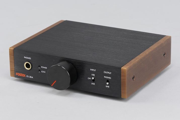 FS-3DA。フロントには、ヘッドホン出力やボリュームのほか、入力切り替えスイッチ、出力切り替えスイッチを搭載している