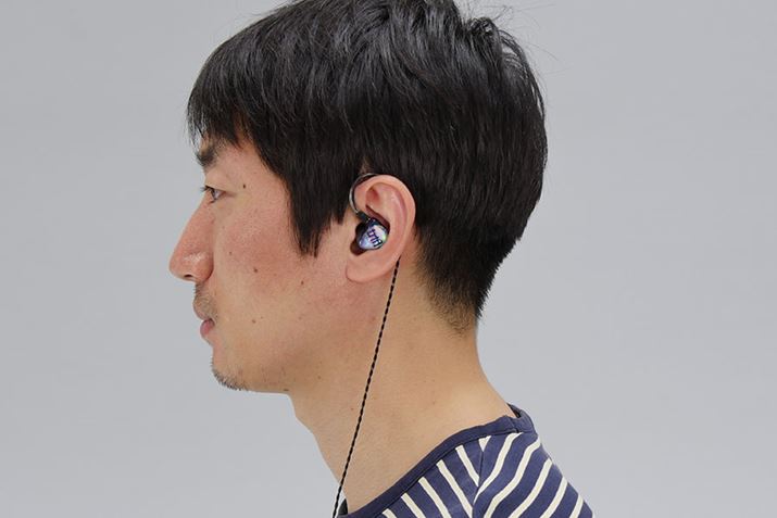ボディはカスタムIEMをベースとしたふくらみのある形状だが、全体的にコンパクトにまとめられている。特徴的なのはノズルに向かってシェルが細くなっていく独特なフォルム。これにより耳の穴の入り口周辺と干渉しにくく、耳の深くまで挿しこめるような感覚がある。着け心地はきわめて快適で、長時間装着しても途中で痛くなることはないはずだ。挿し込む深さに関係なく装着時のバランスがいいのも特徴で、歩行時に抜け落ちることもないだろう。