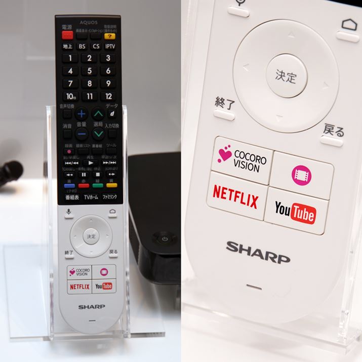 このほか、付属リモコンには、プリインストールアプリの「COCORO VISION」「COCORO VIDEO」「NETFLIX」「YouTube」を直接起動できるダイレクトボタンや、リモコンのマイクを使った音声検索機能を搭載。音声検索機能では、接続している「AQUOS」や「AQUOSブルーレイ」内の番組表や録画リストの検索が可能だ。