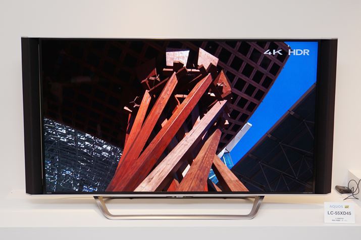 4K液晶テレビ「AQUOS 4K」は、「XD45」「US40」「U40」の3シリーズ計7機種が発表された。いずれも、ULTRA HD Blu-ray/ひかりTV/NETFLIXのHDR映像に対応(ドルビービジョンは非対応)。これまでも、従来機種の一部でもアップデートでHDRに対応したモデルはあったが、新モデルではHDR映像を標準でサポートしている。加えて「XD45」「US40」の2シリーズは、消費電力を抑えながらピーク輝度を高めた新開発の高輝度技術「リッチブライトネス」と、艶やかな黒を表現できる「N-Blackパネル」を搭載。HDR映像をさらに高画質で楽しめるようになっている。