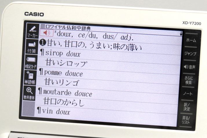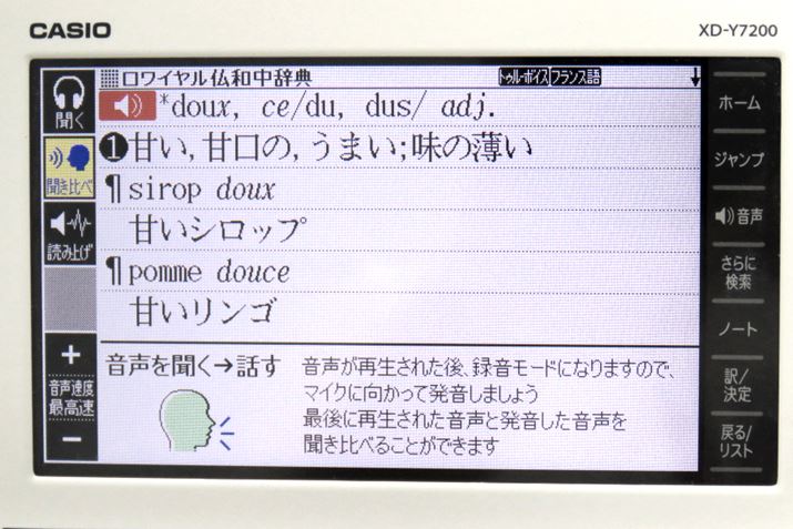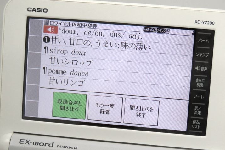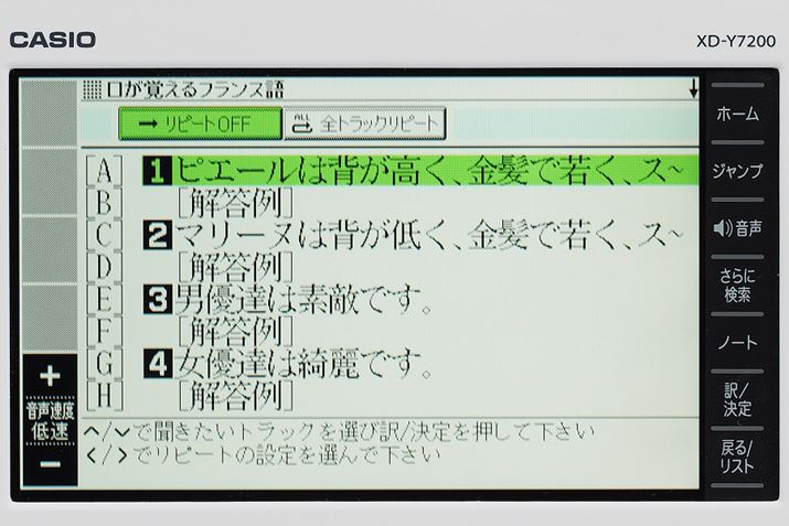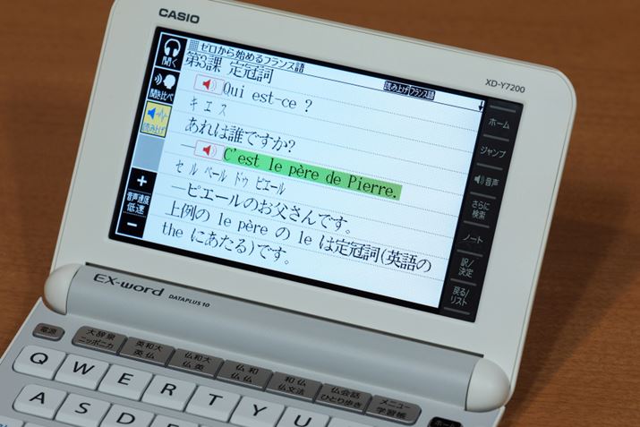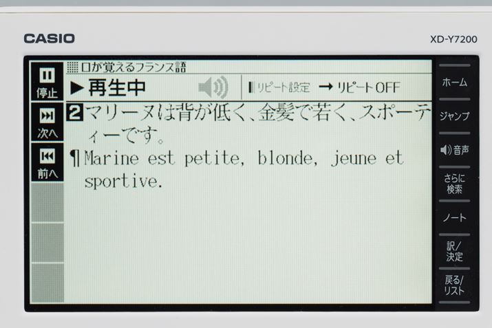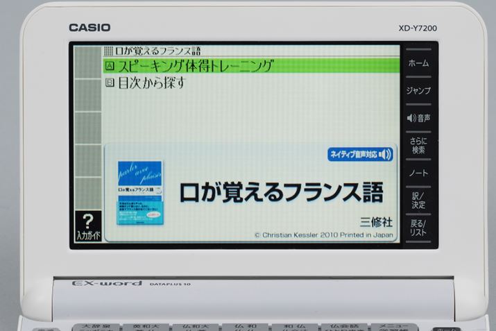 まだ学習効果は披露できない状態なので、まずは、XD-Y7200の収録コンテンツや機能などをチェックしつつ、フランス語学習モデルたる部分を確認してみましょう。