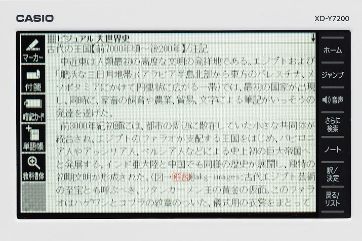 マークした部分を電子辞書内の「マーカー単語帳」に記録しておけば、後で見返すことができます