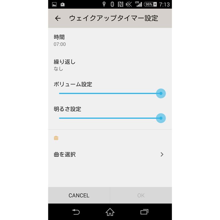 目覚ましの代わりに、光と音で寝起きをサポートしてくれるウェイクアップタイマー機能。個人的には結構使えそうな機能だったのに、消費電力の関係でiPhoneで利用できないのは残念