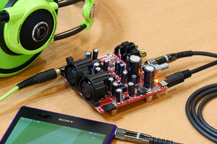 ひと通りのセットアップが終わったところで、いよいよソニーモバイルのファブレット「Xperia Z Ultra」とAKGのヘッドホン「Q701」を3.5mmステレオミニジャックで接続し、鳴らしてみた。まずは、音のボリューム感と厚みにビックリ。ベースの力強いサウンドを強く感じられたほか、高音域の小さな電子音でもはっきり聴こえてくるようになった。基板内部で13Vに昇圧駆動しているだけあって、その恩恵は大型のヘッドホンでも十分体験できる印象だ。また、標準で搭載されているオペアンプにより、歪みやノイズがしっかり抑えられており、きれいに音が増幅されていることがわかる。今回、ケーブルが用意できなかったためバランス駆動は試せなかったが、アンバランス接続時でもヘッドホンアンプの効果は十分に堪能できた。