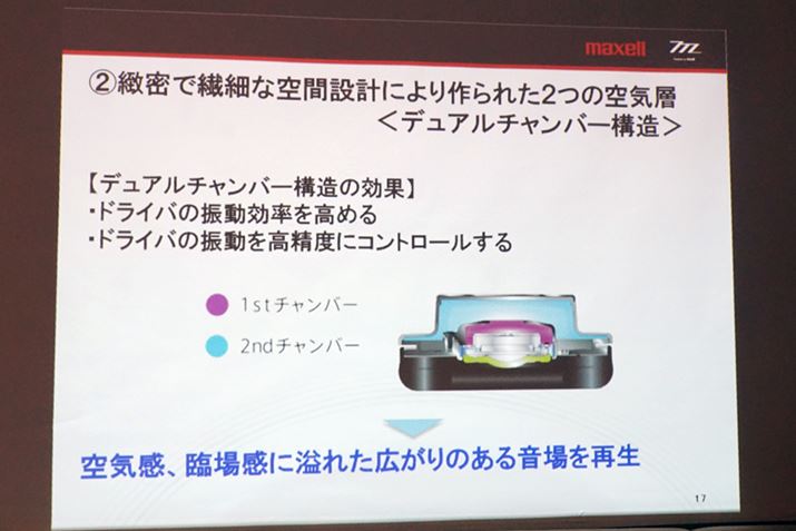 デュアルチャンバー構造により、2つの空気層でドライバーを最適にコントロールするという。「MXH-RF550」などでも採用実績があり、同社が得意とする技術だ