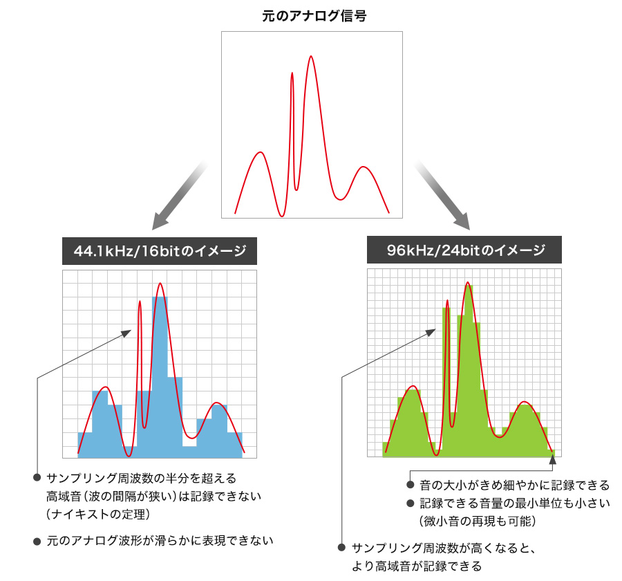 「ハイレゾ=高音質」は間違ってはいないが、もう少し深く知るために、ここではそのポイントと理屈を、図解を交えて解説しよう。