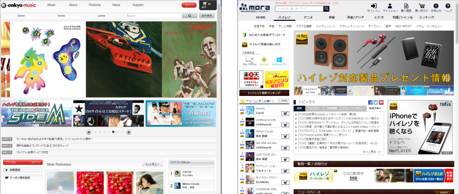 ちなみにポップスやロックなら、e-onkyo(画像左)やmora(画像右)が充実している