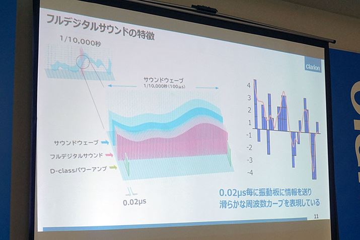 ボイスサーキットにかける電圧で振動板にかかる力を9段階で制御。これを0.02μsという非常に短い時間周期でコントロールし、滑らかな周波数カーブを表現している