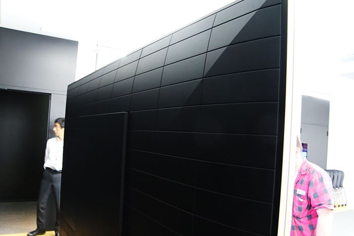 独自のバックライト マスタードライブを搭載するZ9Dシリーズの100V型モデル。受注生産でメーカー希望小売価格は700万円(税別)。スタンドなしで118.6kgあり、壁掛けはできない