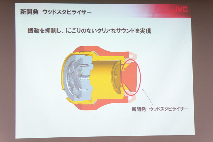 内部の背圧を調整し、振動を抑えクリアなサウンドを再現する「ウッドスタビライザー」