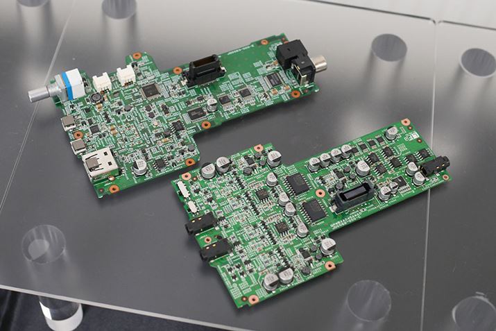 奥の基板がデジタル回路基板で手前がアナログ回路基板。基板中央にあるコネクタを使い、上下にドッキングするような形で搭載されている