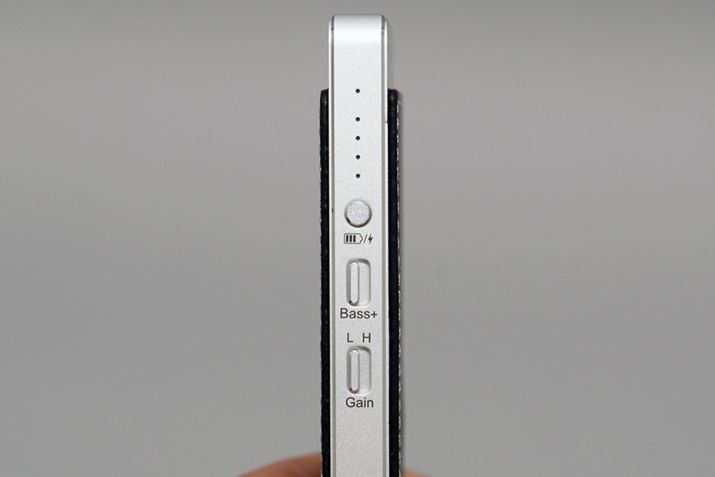 本体側面には、モバイルパワーバンク機能用のスイッチやバスブーストスイッチ、ゲイン切り替えスイッチなどを装備。バスブースト機能は、ディスクリート構成の完全アナログ回路で処理する仕組みになっている