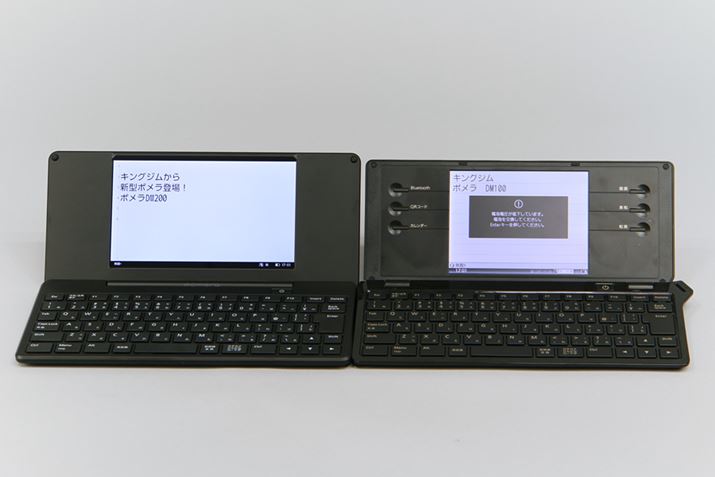 左がDM200、右がDM100。画面サイズが大きくなり、視認性がアップしている。本体サイズは、幅は変わらず、奥行と高さが少しだけ増えている。キーボード面がつや消しになったのも地味ながら、うれしい変更点だ。ただし、指紋はどちらも目立つ