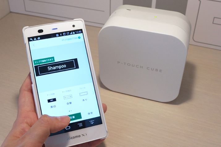 「PT-P300BT」のすべての操作は、スマートフォンで行う。専用のアプリ「P-touch Design&Print」で編集したデータを、Bluetoothを介して本体に送信し、印刷するという仕組みだ。日ごろから使い慣れたスマートフォンで編集できるので、機械の操作が苦手でも気軽に使用できる。また、通勤中や家事の合間などのすきま時間をラベル作成に当てることもできそうだ。なお、アプリは発売日までに、iOS、Androidバージョンが用意される。