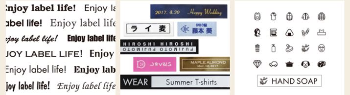 従来のラベルライターでは、本体内蔵のフォントやコンテンツしか印刷できなかったが、「PT-P300BT」はアプリを使用することで、使用できるフォントの種類が格段に増加。アイデア次第でさまざまな種類のおしゃれなラベルが自由に製作できるという。