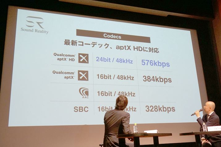 今回展示されていた対応プレーヤーの場合、aptX HDで接続されるとaptX HDのロゴが表示される