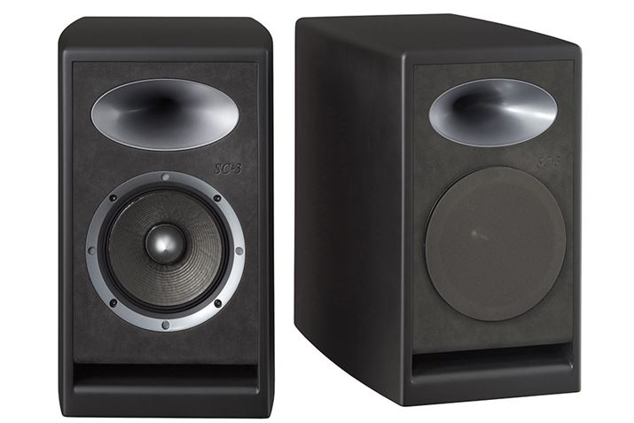 「SC-3(B)」は、コーンウーハーとホーンツイーターを採用した、2Wayバスレフ型のスピーカー。別売の専用スタンドが用意された大きめのスピーカーで、キャビネットサイズは300(幅)×484(高さ)×440(奥行)mm(ターミナル突起部含む)、重量は24.1kg。再生周波数帯域は28Hz〜50kHzと幅広く、また最大入力は200Wに対応するなど、ハイレゾ音源の再生に適したエネルギー感と精細さを再現可能なモデルとなっている。