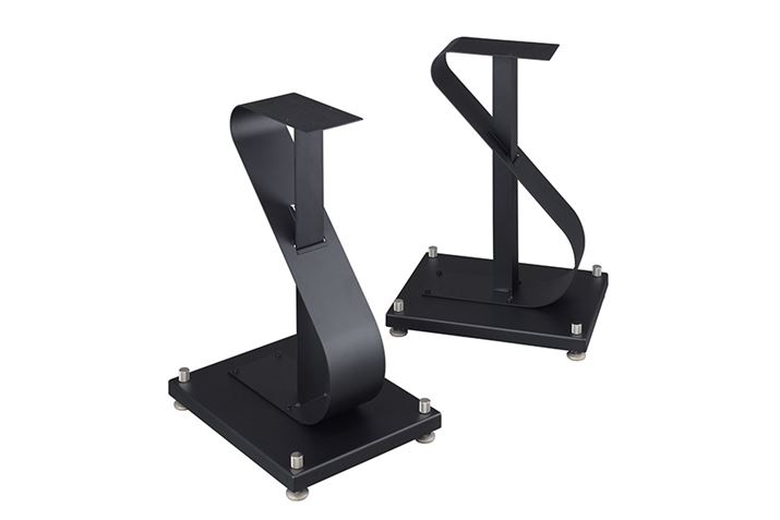 専用の別売スタンド「AS-3(B)」。脚部には適度な弾性を持たせる構造とすることで、スピーカー駆動時に発生する振動を吸収する