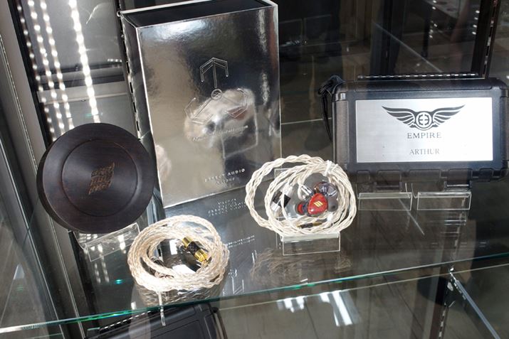 カスタムIEMコーナーも用意。EMPIRE EARSの14ドライバーカスタムIEMと、ケーブルメーカーEFFECT AUDIOの超高級ケーブルをセットにした「Arthur」も展示されていた