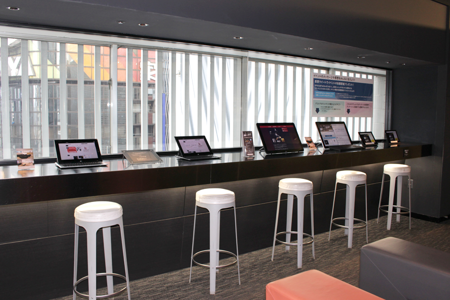 イベント会場ロビーの様子。Xperiaタブレットを使って来場者アンケートを行っている