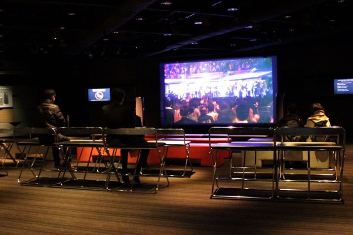 ゆったりした空間でリラックスして音楽と映像を楽しめるようになっている。入退出も自由で、気楽に立ち寄ることができる
