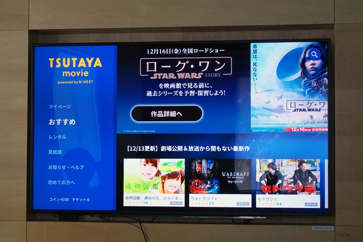 端末発売日と同時スタートとなるCCCの新動画サービス「TSUTAYA movie powered by U-NEXT」。サービス開始時点で、カラオケなどを除いた約10万本のタイトルをラインアップする