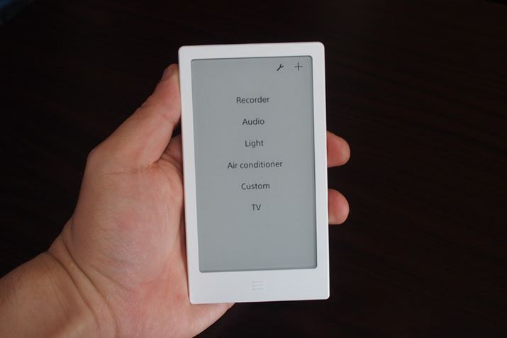 物理ボタンがなく、ディスプレイにバックライト機能もないため、暗い状態での操作はやや難があるが、消費電力の少ない電子ペーパーをディスプレイに採用したことで、ボタンを常に表示させておくことができる。電源は内蔵バッテリーを使用し、使用状況にもよるが、満充電後は1か月ほど持つという。電池駆動のリモコンに比べると、バッテリー充電の頻度はやや多めだ。