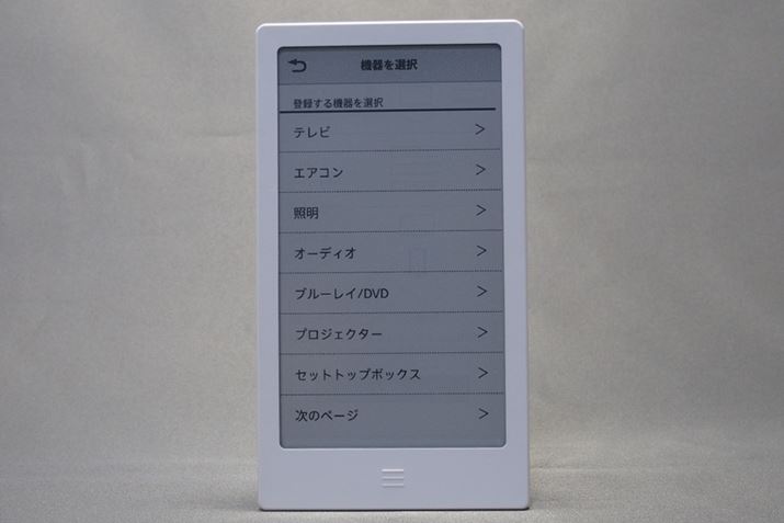 冒頭でも述べた通り、HUISはタッチ操作対応の電子ペーパーディスプレイを備え、ボタンを自由にレイアウトできるのが最大の特徴だ。一般的な学習リモコンのような物理ボタンはなく、画面に配置されたボタンをタッチすることでリモコン操作が行えるようになっている。