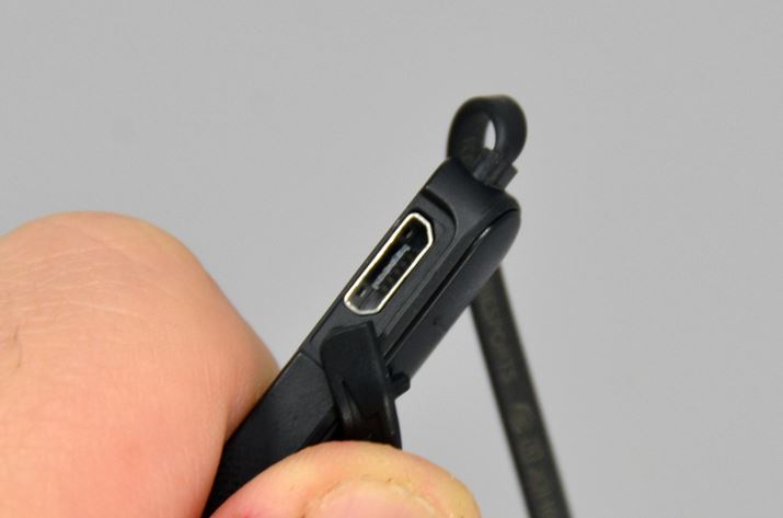 バッテリーはマイク付きリモコン部分に内蔵されている。充電端子はAndroidスマートフォンやタブレットで一般的なmicroUSB形状を採用している