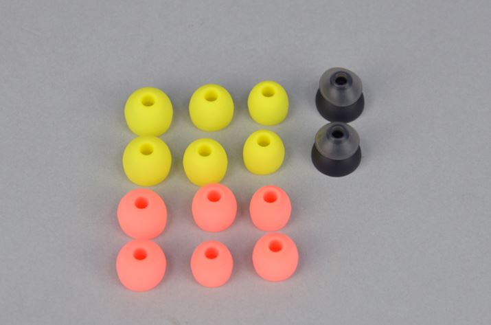 同梱されているイヤーピース。カラフルなカラーを採用するのがSpinFitイヤーチップ、ブラックカラーを採用するのがSpinFit TwinBladeイヤーチップだ