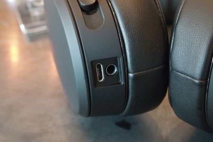 左ハウジング下部には、有線接続用の3.5mmジャックと、内蔵バッテリー充電用のMicroUSB端子も用意されている